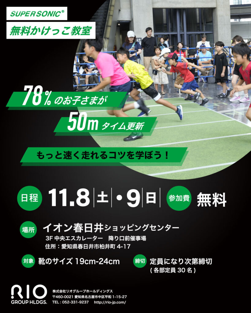 78%の子が速くなった靴"SUPER SONIC"を履いて走り方を楽しく学びましょう